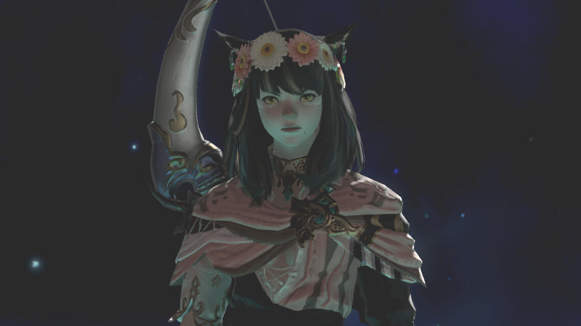 BEGINNINGS- Felicity “Feli” Katawyn is the Warrior of Light, but before that she was just an orphan Miqote girl of unknown Moonkeeper origins. She does not remember much before stumbling into Gridania one day, confused but otherwise ready for whatever the world threw at her. She was directed to seek out Mother Miounne, who effectively adopted her. Under Mother Miounne’s care, she got to know the people of Gridania through numerous errands and extensive boredom, picking up any and all skills that the Twelveswood city state had to offer.- Archer was her first and preferred job, where she learned to hunt and fend for herself. It also offered her time to be alone. This is where she met Guydelot and Samson, whom she considered her first real friends in her memory. Much of her short, confusing youth was spent alone in the forest, preferring the company of the trees and the wind than to her Gridanian keepers, but hanging with Guydelot and Samson helped her get out of her shell and find joy in making mischief. She was known by the Wood Wailers to be quite a troublesome teen.- Because she has a love of wandering, botany came easy to her and though she doesn’t take it very seriously, she has a good eye for it nonetheless.GROWING- A major turning point in her life was the death of her trusted confidant Haucherfant. It is a death that has stuck to her like bile in the throat, and she has carried that failure with her as a reminder of her limits. There was a lot she did not understand about the man, his supposed feelings for her something she regrets never understanding or noticing until after the fact. But she finds great comfort with the Fortemps family now, and strives to write to Lord Fortemps often.- Her understanding of the world was very limited, and the more she came to understand of what was going on the more she came to resent Empire for it's tyranny. From her earliest dealings with them at the Praetorium, she knew that the Garleans were a force to be reckoned with. But she did not truly understand this until she was bested so easily by Zenos vae Galvus at Rhalgr's Reach. It was the first time someone with comparative strength had bested her, and shaken from her second major failure and the cruel hunt the Prince perpetuated, she vowed to fight against imperialism and all who would subjugate others.FINDING ONESELF- Her unexpected journey to the First left her wanting for answers and with a whirlwind of questions. Emet Selch had given the Scions a lot to think about, but for Feli he had laid a trail that came the closest anyone had ever managed to giving her answers to who she was, and why she was here. This more than anything was something she had been searching for her entire (known) life. Upon his death, she felt like perhaps there was so much more she could have asked him if she had had the nerve.- Feli wanted to distrust Venat after all that happened in the First, but after sparring with and getting to know her on Elpis she feels more of a kinship than she thought she would. She loved talking to Venat about her adventures, feeling a connection she had never had before: a family member to finally recount her life to. (Tyche and Venat got along well despite often having healthy debates).- Following the events of the Final Days and the many mysteries that were solved in the wake of their travels, Feli feels more at peace with her place on this star, and who she is. Thanks to Venat and her friends, she has finally come to the conclusion that who she was does not matter, as long as she likes who she has become. While she is sad that the Scions have "disbanded", she is grateful for the rest and the freedom to travel at her whimsy. She does not intend to stop.IN DEPTH LORE DOC HERE!