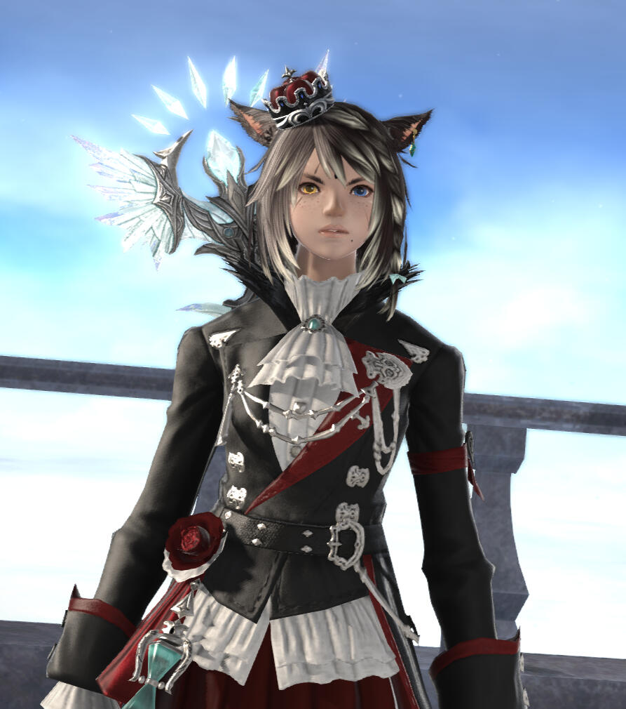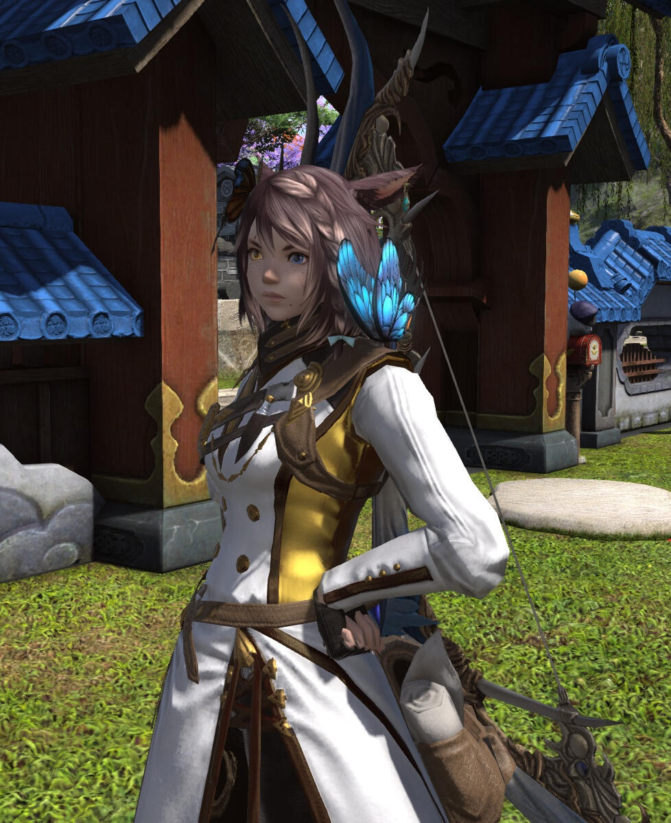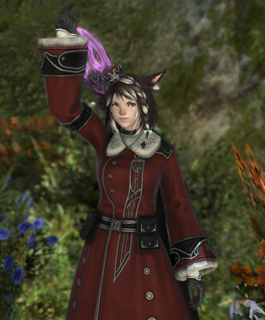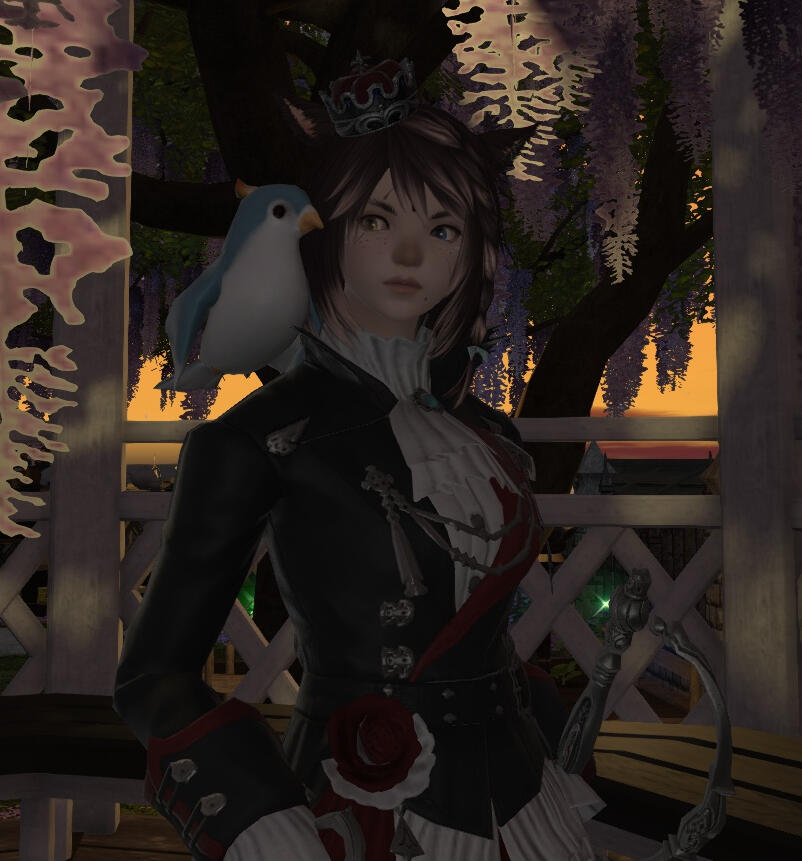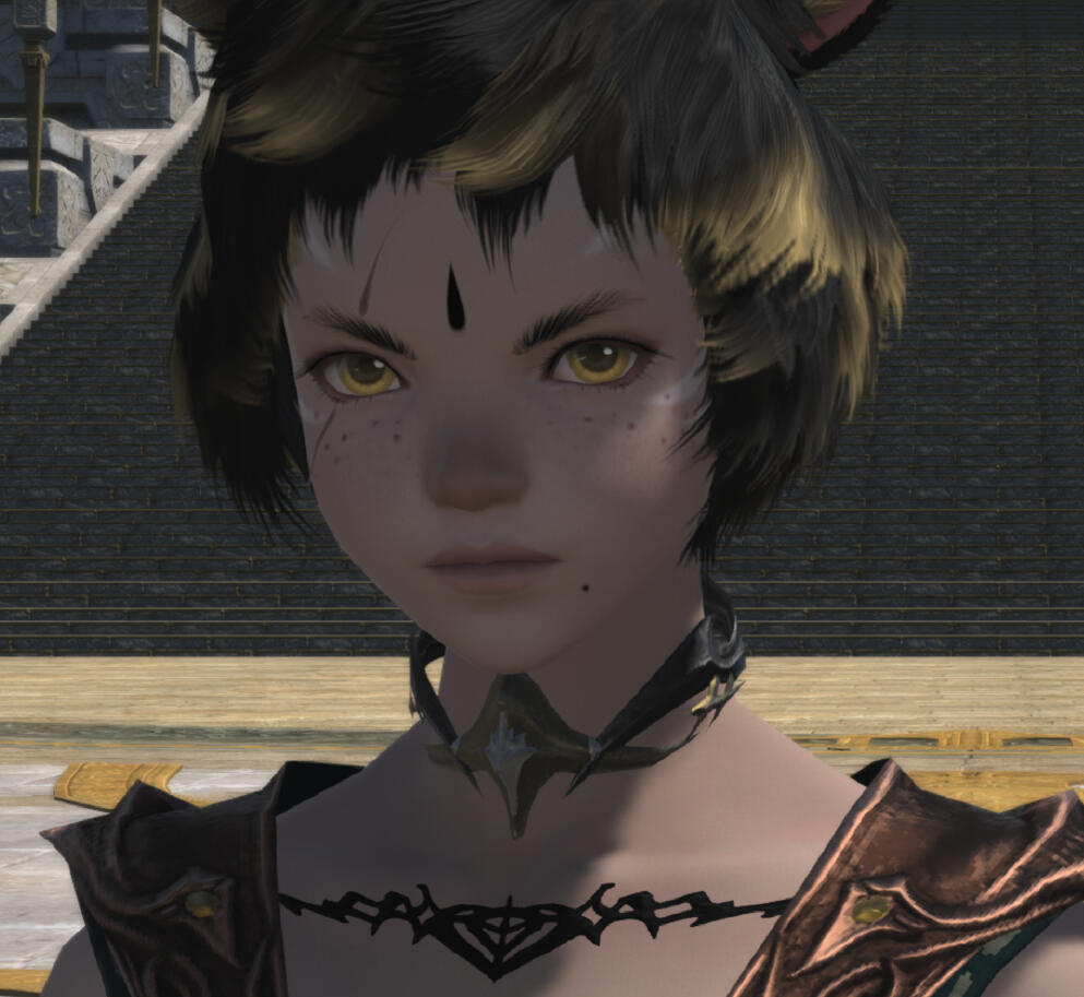 BEGINNINGS- Felicity “Feli” Katawyn is the Warrior of Light, but before that she was just an orphan Miqote girl of unknown Moonkeeper origins. She does not remember much before stumbling into Gridania one day, confused but otherwise ready for whatever the world threw at her. She was directed to seek out Mother Miounne, who effectively adopted her. Under Mother Miounne’s care, she got to know the people of Gridania through numerous errands and extensive boredom, picking up any and all skills that the Twelveswood city state had to offer.- Archer was her first and preferred job, where she learned to hunt and fend for herself. It also offered her time to be alone. This is where she met Guydelot and Samson, whom she considered her first real friends in her memory. Much of her short, confusing youth was spent alone in the forest, preferring the company of the trees and the wind than to her Gridanian keepers, but hanging with Guydelot and Samson helped her get out of her shell and find joy in making mischief. She was known by the Wood Wailers to be quite a troublesome teen.- Because she has a love of wandering, botany came easy to her and though she doesn’t take it very seriously, she has a good eye for it nonetheless.GROWING- A major turning point in her life was the death of her trusted confidant Haucherfant. It is a death that has stuck to her like bile in the throat, and she has carried that failure with her as a reminder of her limits. There was a lot she did not understand about the man, his supposed feelings for her something she regrets never understanding or noticing until after the fact. But she finds great comfort with the Fortemps family now, and strives to write to Lord Fortemps often.- Her understanding of the world was very limited, and the more she came to understand of what was going on the more she came to resent Empire for it's tyranny. From her earliest dealings with them at the Praetorium, she knew that the Garleans were a force to be reckoned with. But she did not truly understand this until she was bested so easily by Zenos vae Galvus at Rhalgr's Reach. It was the first time someone with comparative strength had bested her, and shaken from her second major failure and the cruel hunt the Prince perpetuated, she vowed to fight against imperialism and all who would subjugate others.FINDING ONESELF- Her unexpected journey to the First left her wanting for answers and with a whirlwind of questions. Emet Selch had given the Scions a lot to think about, but for Feli he had laid a trail that came the closest anyone had ever managed to giving her answers to who she was, and why she was here. This more than anything was something she had been searching for her entire (known) life. Upon his death, she felt like perhaps there was so much more she could have asked him if she had had the nerve.- Feli wanted to distrust Venat after all that happened in the First, but after sparring with and getting to know her on Elpis she feels more of a kinship than she thought she would. She loved talking to Venat about her adventures, feeling a connection she had never had before: a family member to finally recount her life to. (Tyche and Venat got along well despite often having healthy debates).- Following the events of the Final Days and the many mysteries that were solved in the wake of their travels, Feli feels more at peace with her place on this star, and who she is. Thanks to Venat and her friends, she has finally come to the conclusion that who she was does not matter, as long as she likes who she has become. While she is sad that the Scions have "disbanded", she is grateful for the rest and the freedom to travel at her whimsy. She does not intend to stop.IN DEPTH LORE DOC HERE!