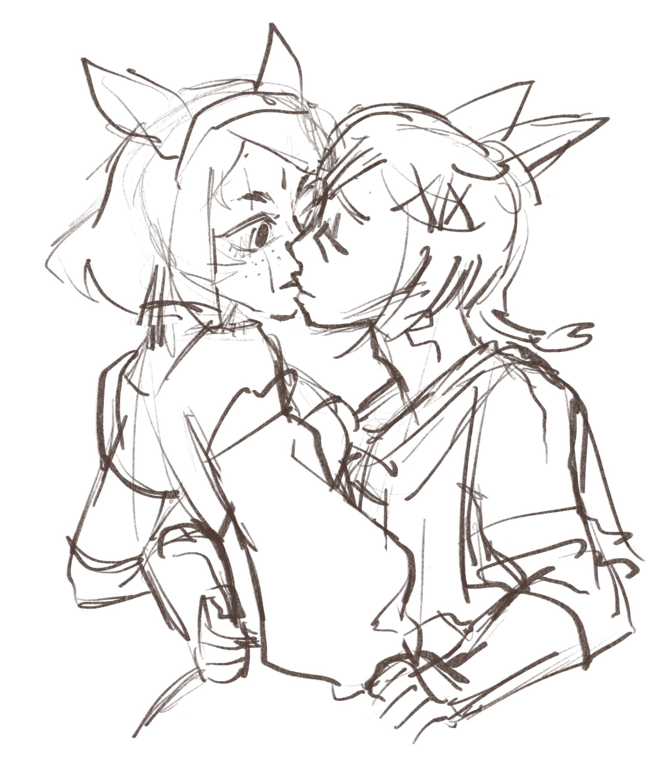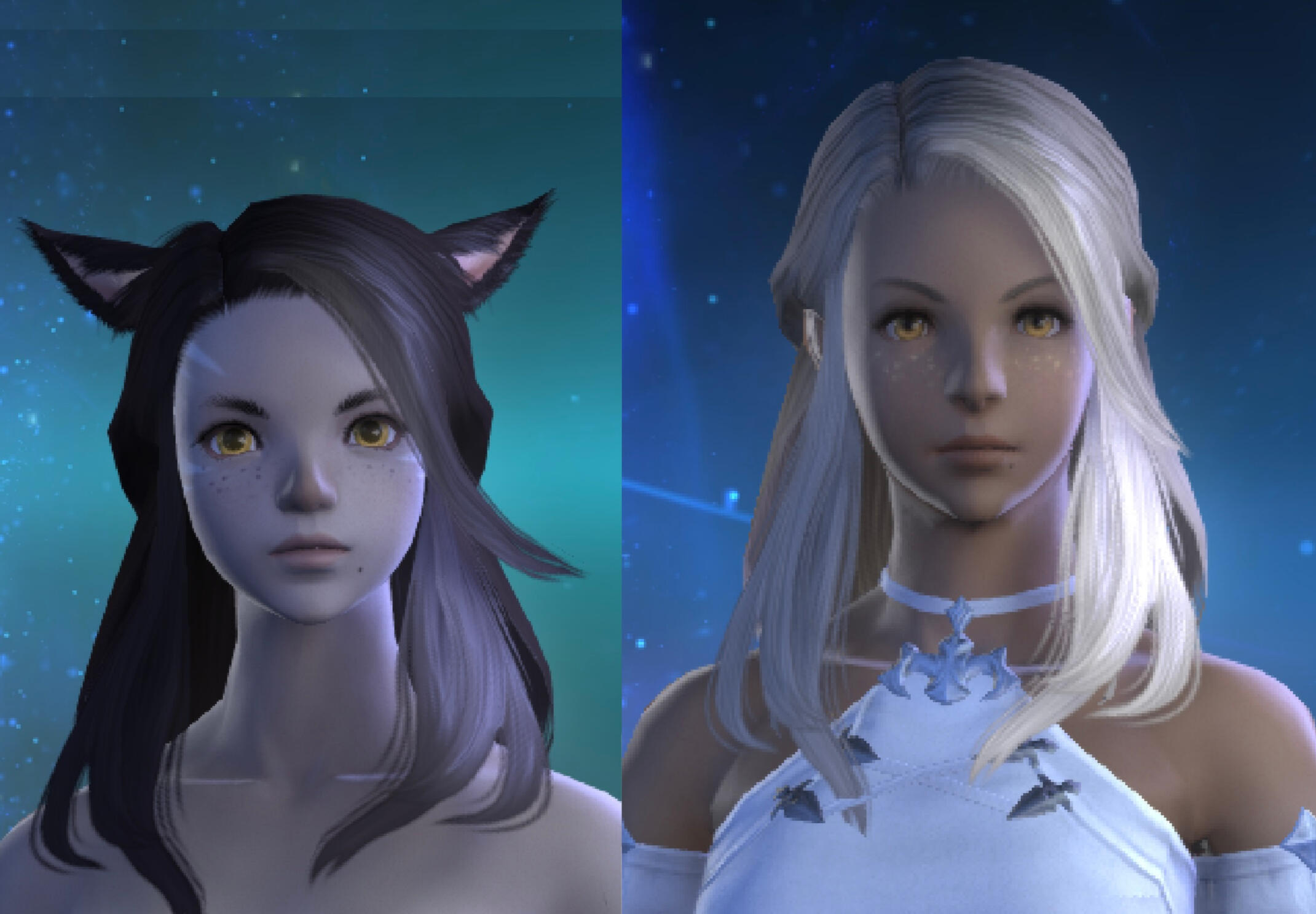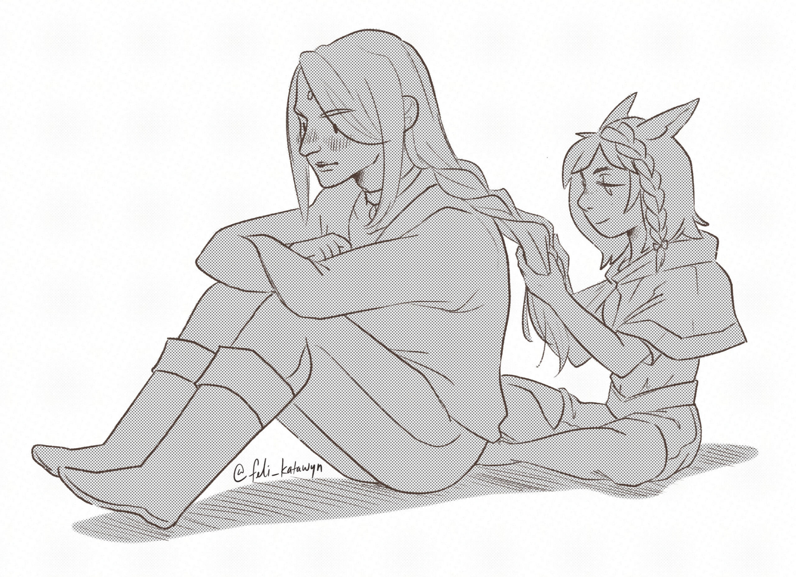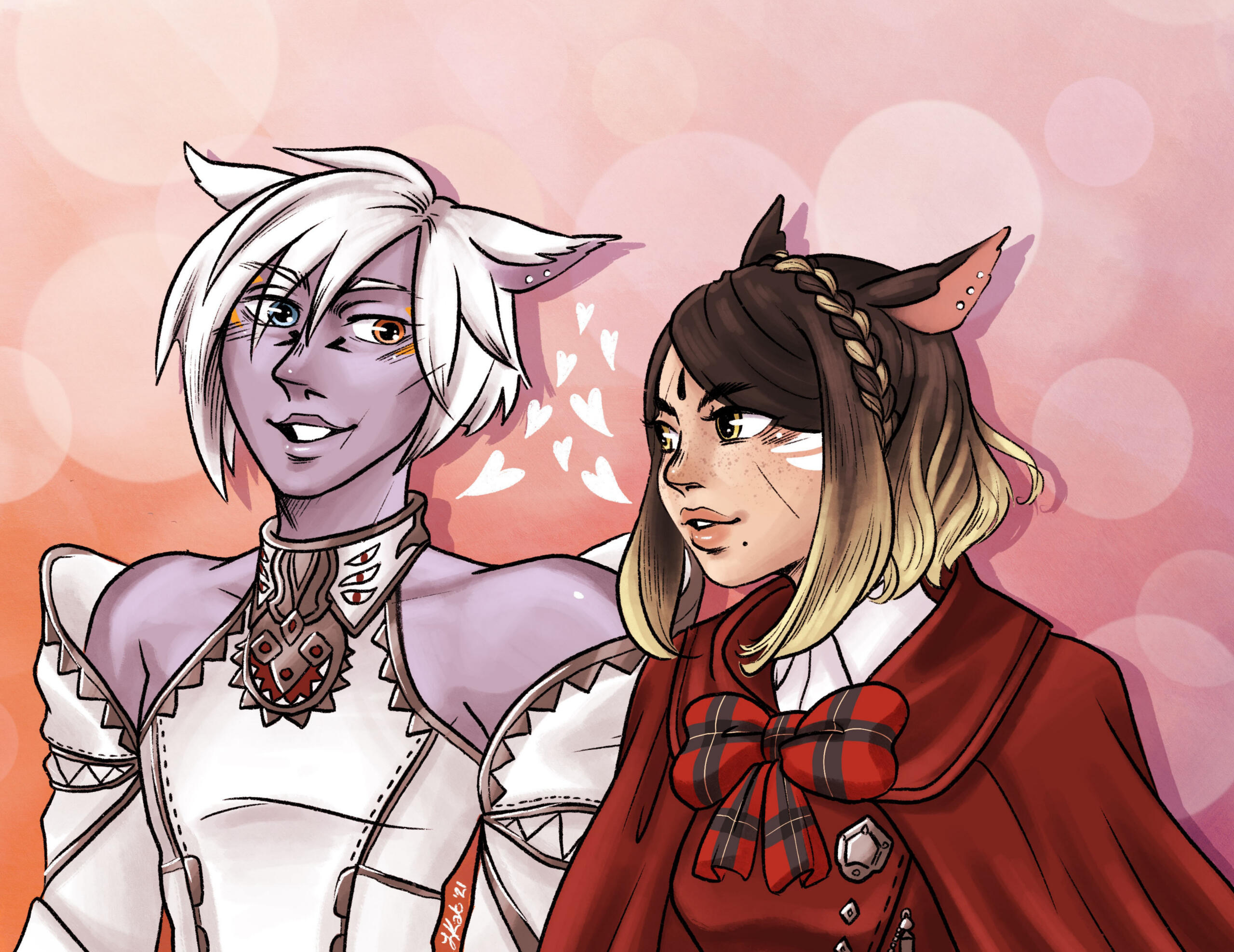 BEGINNINGS- Felicity “Feli” Katawyn is the Warrior of Light, but before that she was just an orphan Miqote girl of unknown Moonkeeper origins. She does not remember much before stumbling into Gridania one day, confused but otherwise ready for whatever the world threw at her. She was directed to seek out Mother Miounne, who effectively adopted her. Under Mother Miounne’s care, she got to know the people of Gridania through numerous errands and extensive boredom, picking up any and all skills that the Twelveswood city state had to offer.- Archer was her first and preferred job, where she learned to hunt and fend for herself. It also offered her time to be alone. This is where she met Guydelot and Samson, whom she considered her first real friends in her memory. Much of her short, confusing youth was spent alone in the forest, preferring the company of the trees and the wind than to her Gridanian keepers, but hanging with Guydelot and Samson helped her get out of her shell and find joy in making mischief. She was known by the Wood Wailers to be quite a troublesome teen.- Because she has a love of wandering, botany came easy to her and though she doesn’t take it very seriously, she has a good eye for it nonetheless.GROWING- A major turning point in her life was the death of her trusted confidant Haucherfant. It is a death that has stuck to her like bile in the throat, and she has carried that failure with her as a reminder of her limits. There was a lot she did not understand about the man, his supposed feelings for her something she regrets never understanding or noticing until after the fact. But she finds great comfort with the Fortemps family now, and strives to write to Lord Fortemps often.- Her understanding of the world was very limited, and the more she came to understand of what was going on the more she came to resent Empire for it's tyranny. From her earliest dealings with them at the Praetorium, she knew that the Garleans were a force to be reckoned with. But she did not truly understand this until she was bested so easily by Zenos vae Galvus at Rhalgr's Reach. It was the first time someone with comparative strength had bested her, and shaken from her second major failure and the cruel hunt the Prince perpetuated, she vowed to fight against imperialism and all who would subjugate others.FINDING ONESELF- Her unexpected journey to the First left her wanting for answers and with a whirlwind of questions. Emet Selch had given the Scions a lot to think about, but for Feli he had laid a trail that came the closest anyone had ever managed to giving her answers to who she was, and why she was here. This more than anything was something she had been searching for her entire (known) life. Upon his death, she felt like perhaps there was so much more she could have asked him if she had had the nerve.- Feli wanted to distrust Venat after all that happened in the First, but after sparring with and getting to know her on Elpis she feels more of a kinship than she thought she would. She loved talking to Venat about her adventures, feeling a connection she had never had before: a family member to finally recount her life to. (Tyche and Venat got along well despite often having healthy debates).- Following the events of the Final Days and the many mysteries that were solved in the wake of their travels, Feli feels more at peace with her place on this star, and who she is. Thanks to Venat and her friends, she has finally come to the conclusion that who she was does not matter, as long as she likes who she has become. While she is sad that the Scions have "disbanded", she is grateful for the rest and the freedom to travel at her whimsy. She does not intend to stop.IN DEPTH LORE DOC HERE!