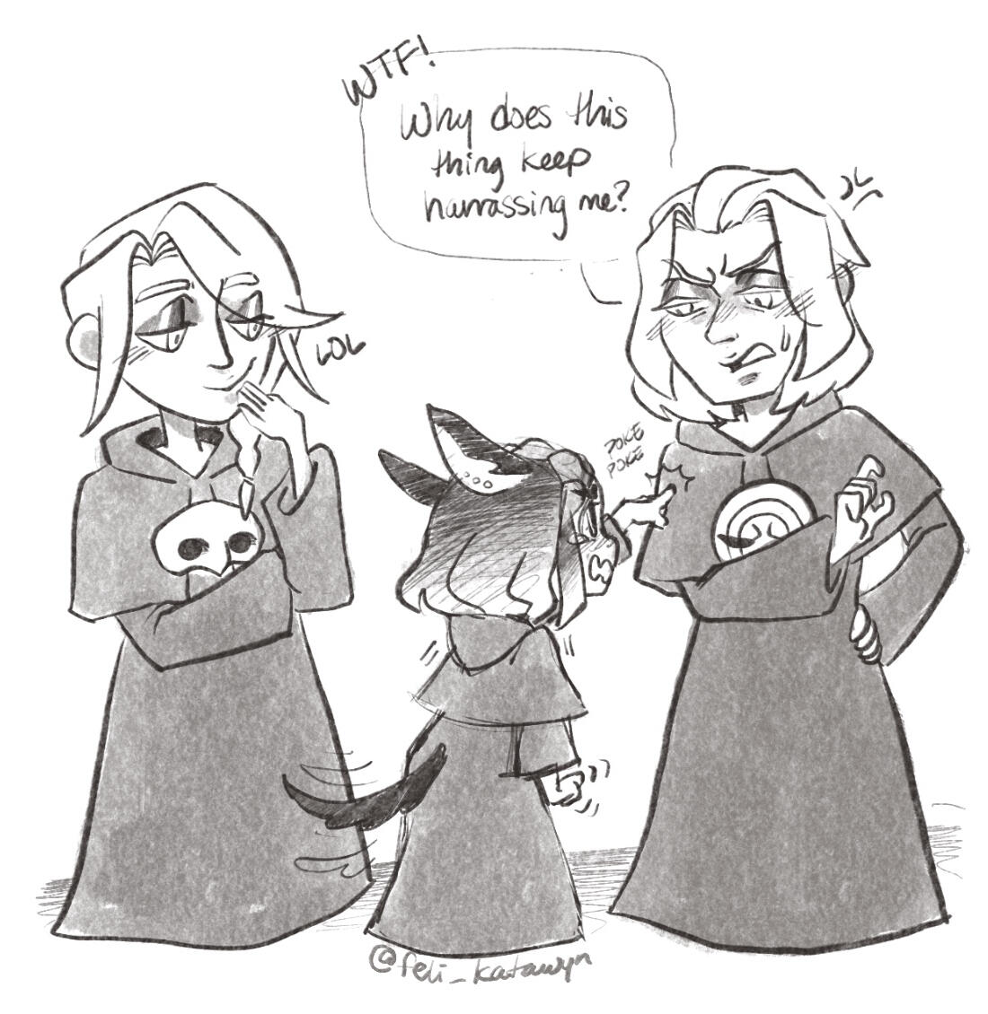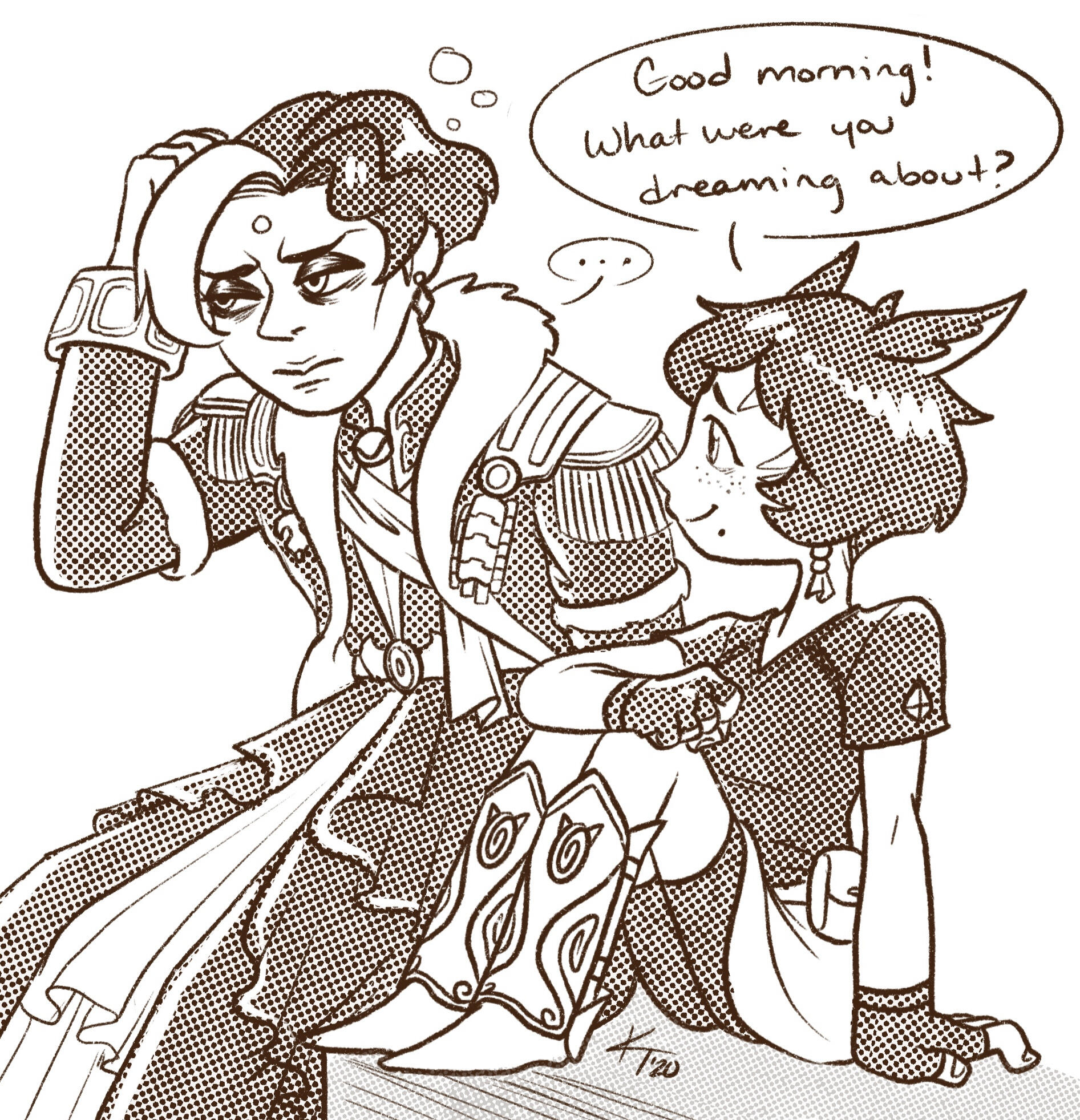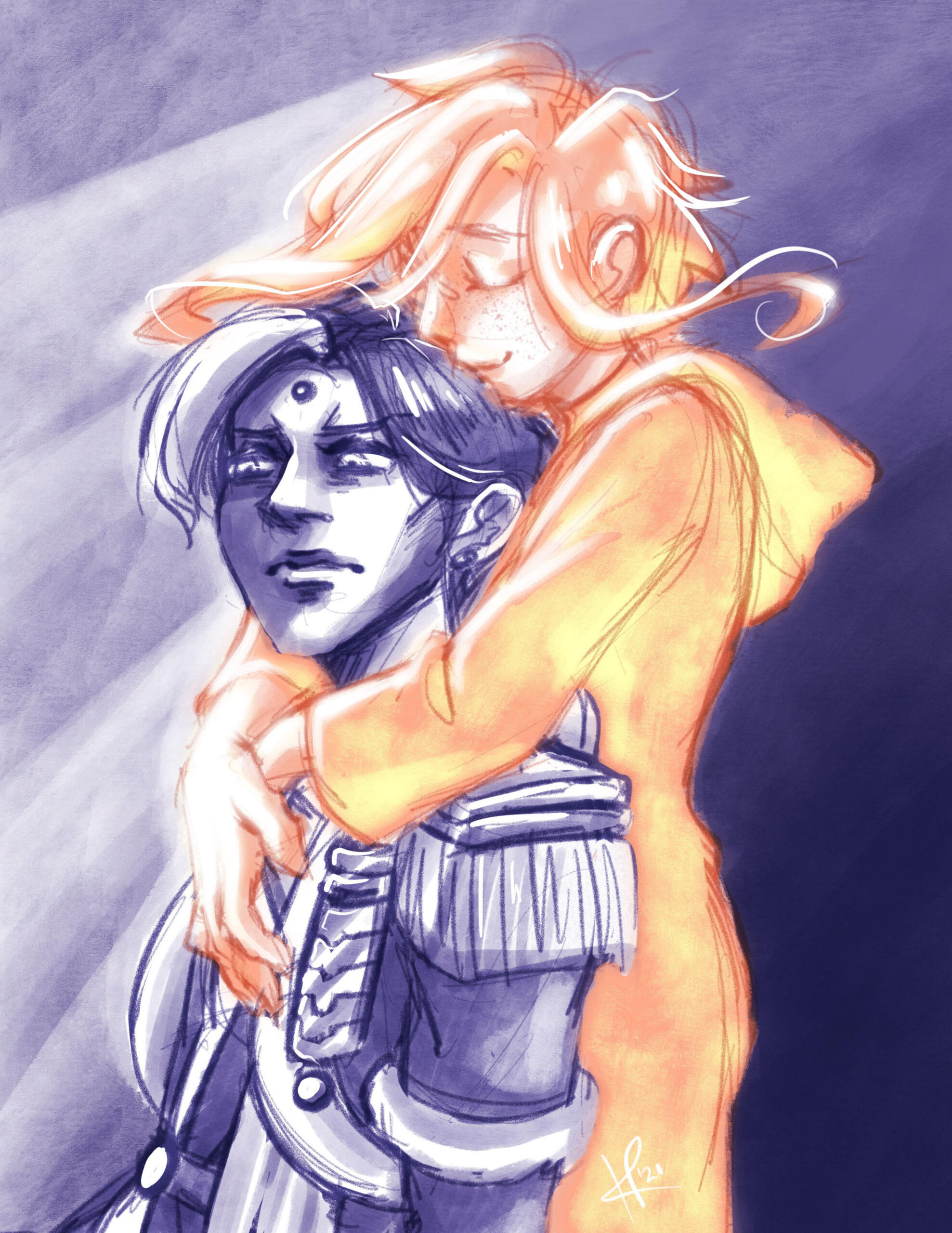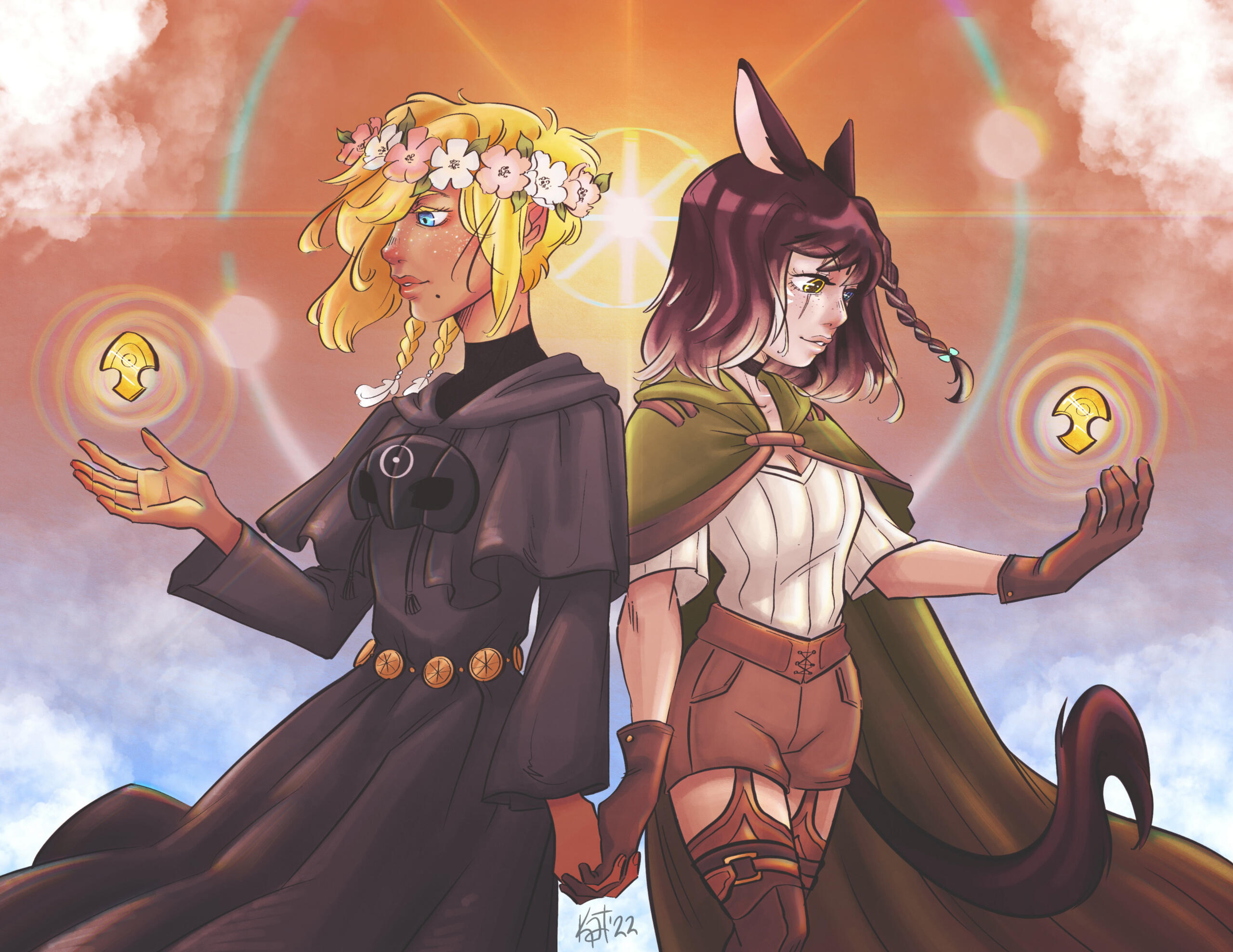 Katharos has always had a sense of wonderlust, going wherever the wings of fate took them. From a young age they were empathetic to the will of the star and the people who inhabited Etherys. Katharos met Hades and Hythlodaeus in the Akademie Anyder. They had a rough start with Hades, but soon friendship blossomed from their rivalry, and that became love and affection shared with Hythlodaeus. Their altruistic actions gained Katharos some renown, which led them to cross paths with Venat and become her successor and apprentice.The Final Days: